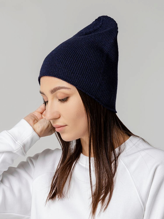 Шапка Dalia — по-хорошему броский и лаконичный аксессуар с гладкой фактурой и актуальным удлиненным верхом. Шапка мягкая и комфортно облегает голову.