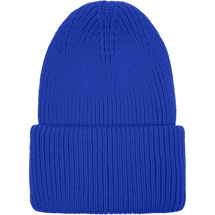 Удлиненная шапка объемной фактурной вязки с отворотом.