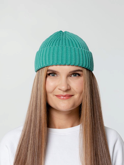 Укороченная шапка бини с отворотом станет ярким акцентом в гардеробе и поможет создать запоминающийся образ.