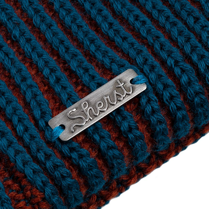 Металлический шильд с названием бренда расположен у заднего шва шапки. Это оставляет место спереди для пришива лейбла или шильдика с логотипом заказчика.