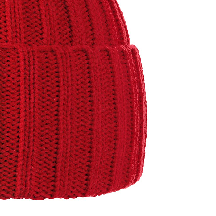Однослойная шапка фактурной вязки с флисовой подкладкой.