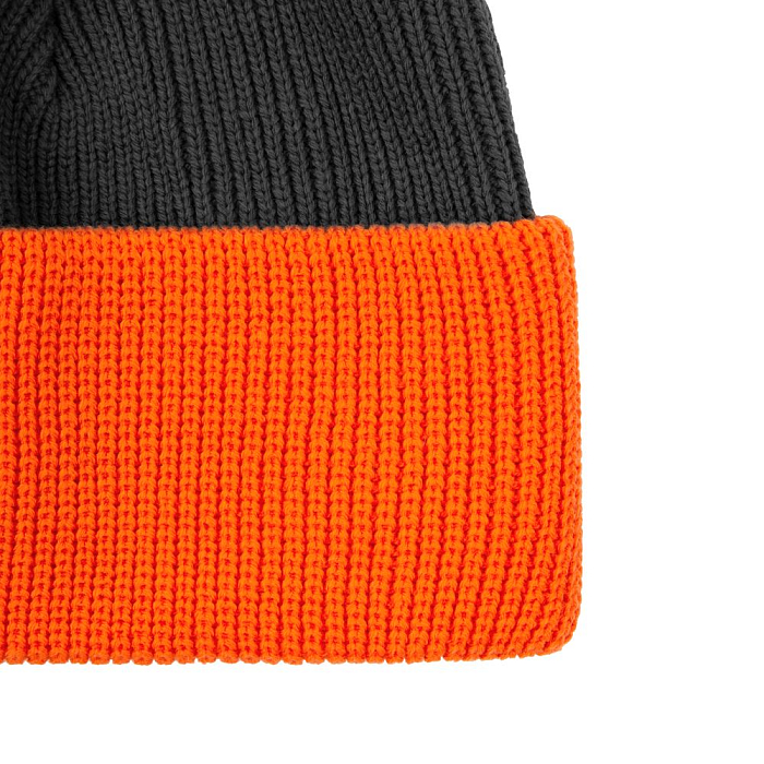 Двуслойная шапка фактурной вязки с контрастным подворотом и помпоном.