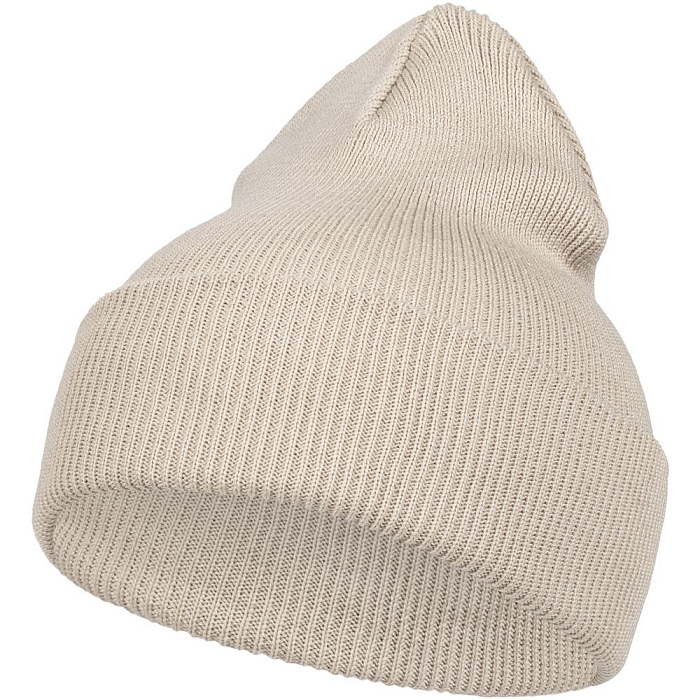 Двухслойная шапка, связанная резинкой, с широким отворотом.