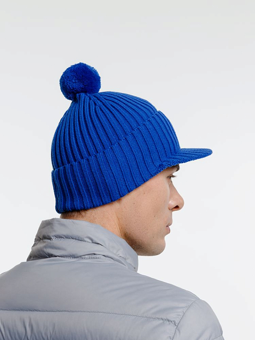 Вязаная шапка с козырьком Peaky, синяя (василек)