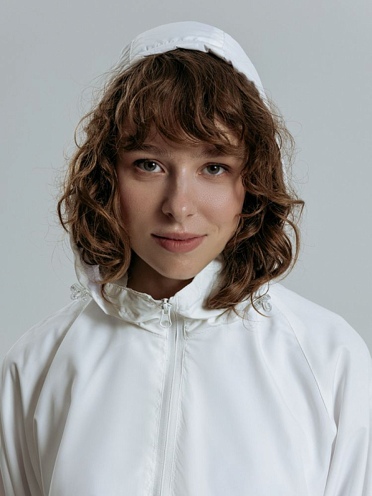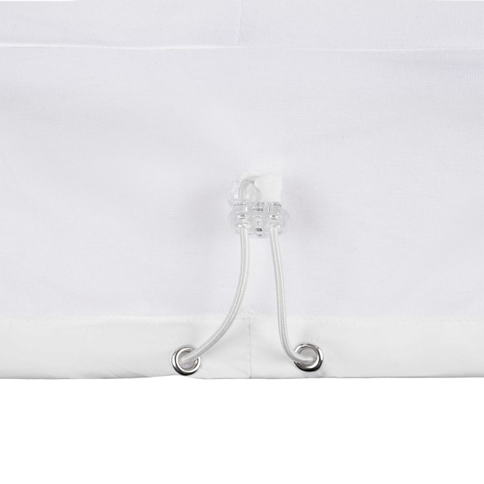 • Кулиска с эластичной резинкой по краю капюшона, по низу изделия и по горловине воротника изделия