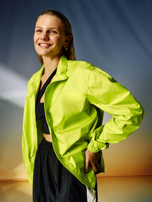 Тонкая гладкая ткань дюспо с притягательным матовым блеском почти бесшумна в использовании и пригодна для большого количества цветов печати. Качественный пошив ветровки добавляет ей презентабельности и гарантирует долгое использование, а яркий цвет привлекает внимание и не выгорает со временем.