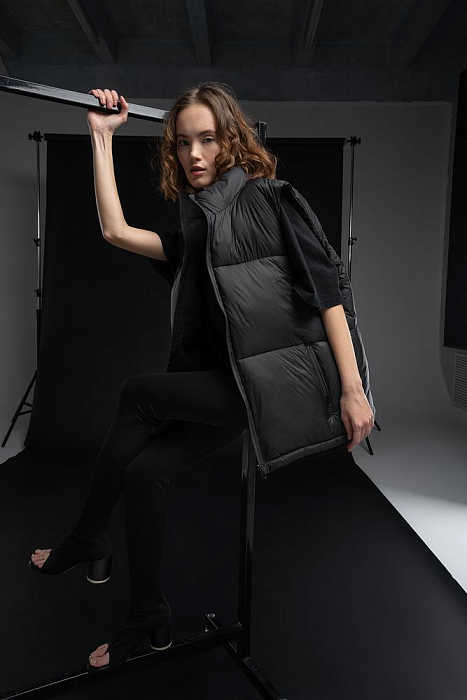 Двусторонний утепленный жилет V2 — это сразу два стильных образа в одном изделии. С одной стороны он стеганый и глянцевый, а с другой — матовый, лаконичный и уже без прострочки. Объемная и легкая модель оверсайз позволяет создать непринужденный и комфортный образ и в городе, и в путешествии.