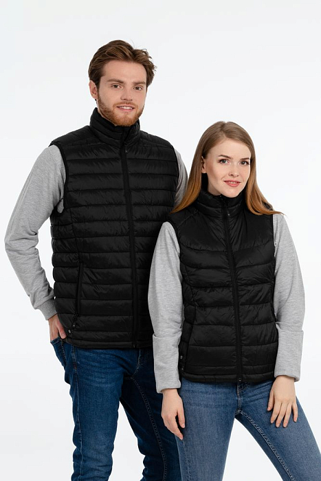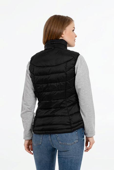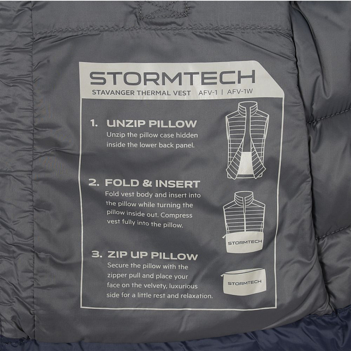 Эргономичный и ультралегкий жилет приталенного силуэта складывается в карман, расположенный внутри на спинке, и превращается в дорожную подушку.