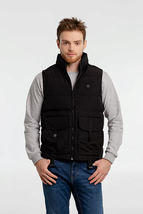 • Утепленный жилет на молнии с воротником стойкой и 2 наружными карманами