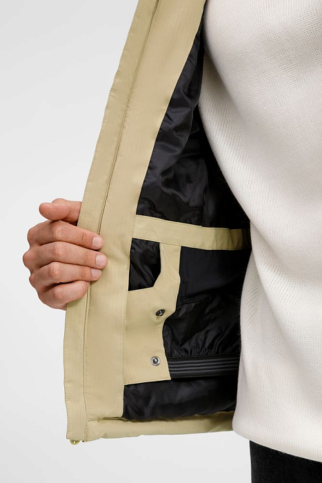 - Отстегивающийся капюшон с утяжкой и кнопками для плотного прилегания и защиты горла
