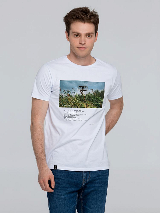 Бесшовная футболка из органического гребенного хлопка. Круглый вырез отделан резинкой.