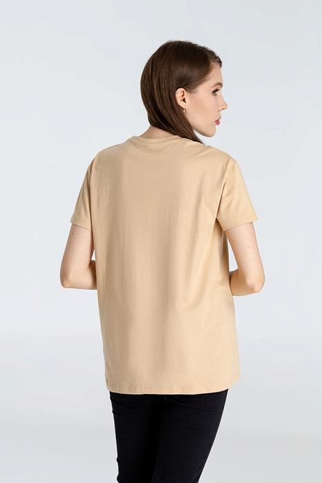 Мягкая, удобная плотная футболка, с воротником, защищенным от деформации. Отлично держит форму. Без боковых швов.