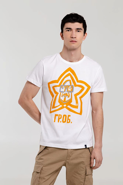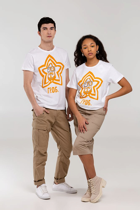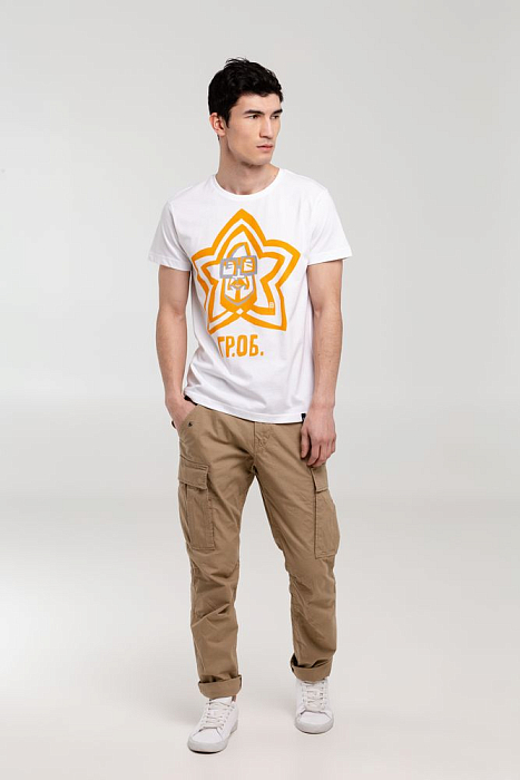 Мужская футболка с круглым вырезом. Двухслойная резинка предохраняет воротник от деформации после стирки.