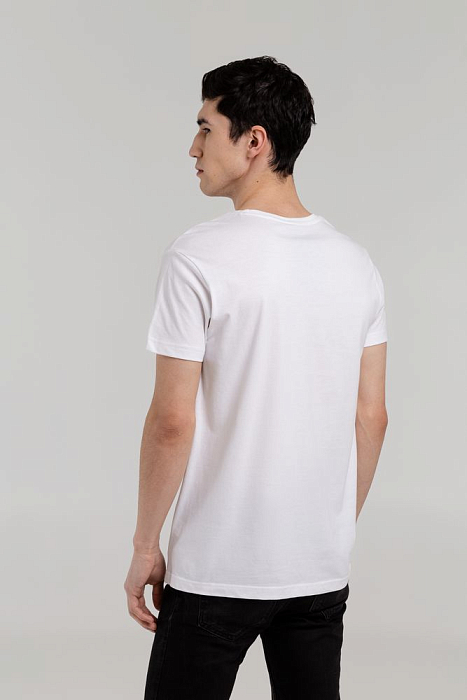 Мужская футболка с круглым вырезом. Двухслойная резинка предохраняет воротник от деформации после стирки.