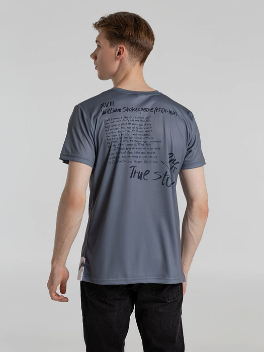Футболка с шекспировским сонетом в оригинале на спине.