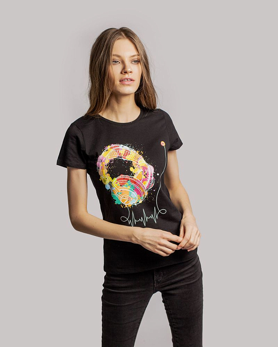 Дизайн футболки Feel The Beat посвящен тем, кто прислушивается к зову своего сердца и всегда доверяет себе — будь то решение важных профессиональных задач или же выбор любимой музыки на вечеринке.