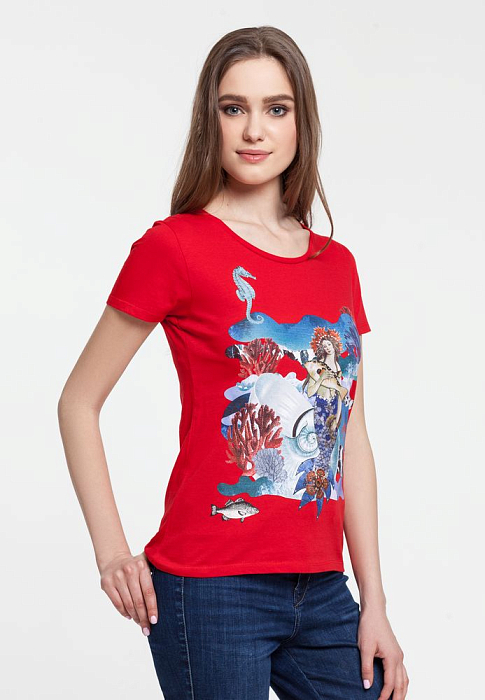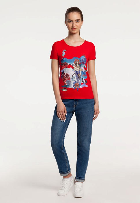Коллекция выполнена в актуальном для 2019 года насыщенном коралловом цвете, который гармонично подчеркивает основные холодные оттенки принта.