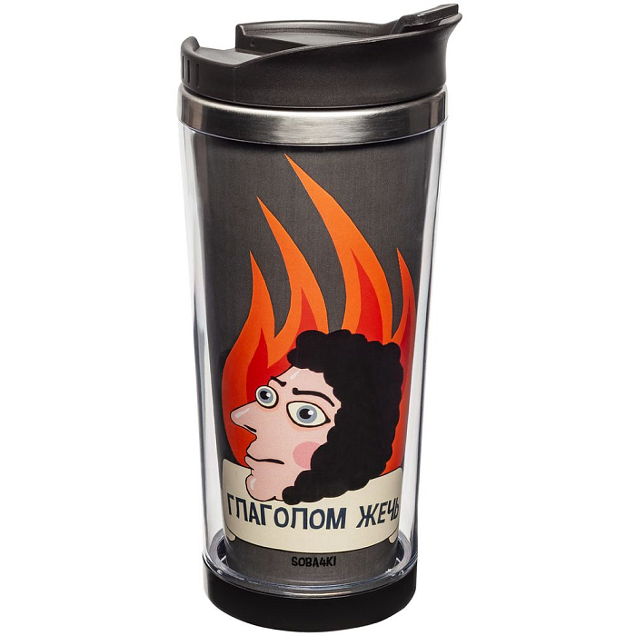 Двухслойная конструкция из пластика снаружи и пищевой нержавеющей стали внутри. Герметичная завинчивающаяся крышка с откидным клапаном для питья.