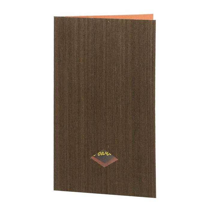 Как яркие краски фруктов прячутся под крышкой коробки, так и эта открытка до поры скрывает свою праздничную сущность — можно лишь подсмотреть в щелочку и попытаться угадать, что скрывается под обложкой из шпона.