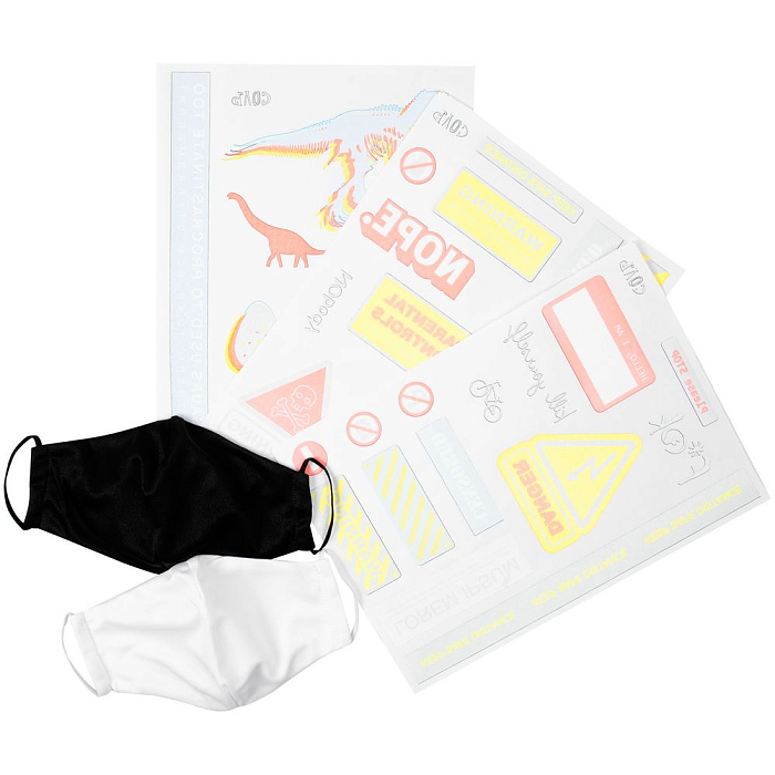 В поисках ответов люди готовы видеть знаки в самых неожиданных местах. Пора дать им эту возможность. По-настоящему знаковый набор!В комплект входят две маски в индивидуальном пакете, три листа с термонаклейками и инструкция по использованию термонаклеек.