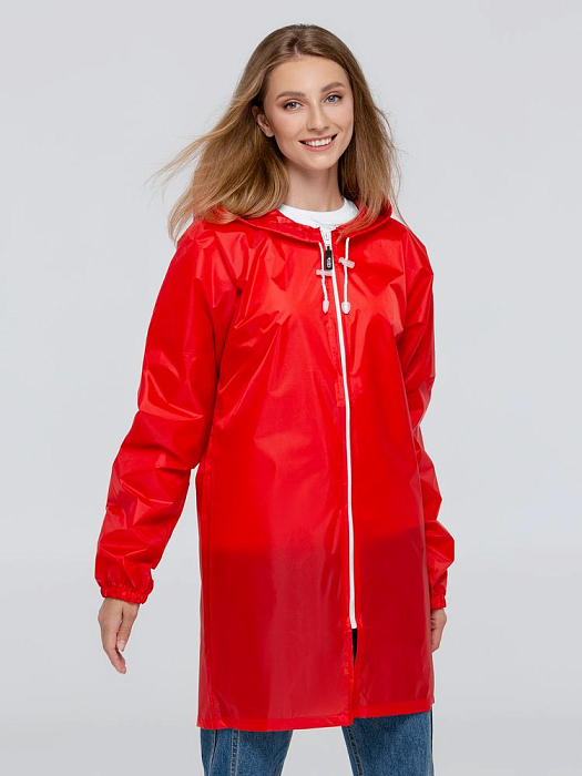 Плащ-дождевик из ткани таффета на молнии с капюшоном. Складывается в мешочек — удобно брать с собой.