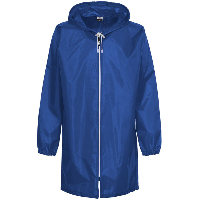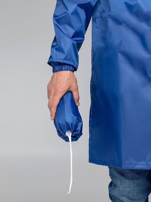 Плащ-дождевик из ткани таффета на молнии с капюшоном. Складывается в мешочек — удобно брать с собой.