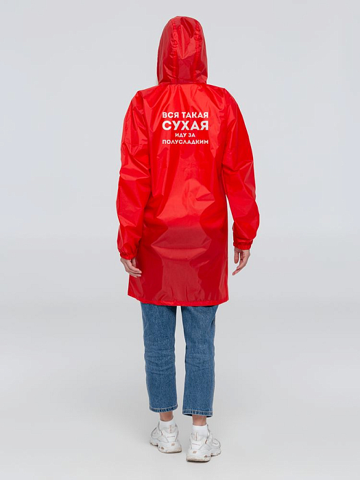 Плащ-дождевик из ткани таффета на молнии с капюшоном. Складывается в мешочек — удобно брать с собой.