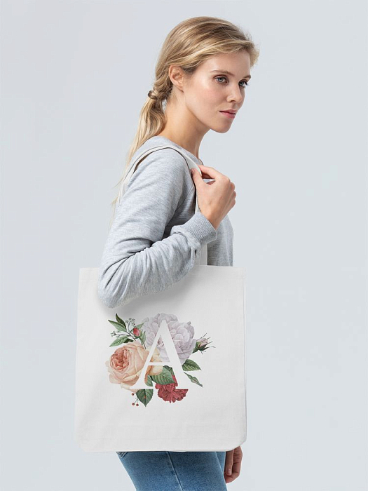 Холщовая сумка «Цветочная азбука: А», молочно-белая