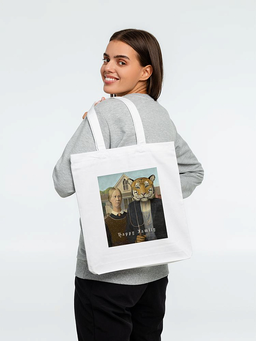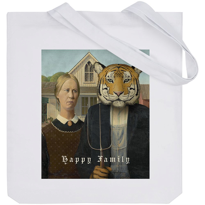 Картине «Американская готика» всегда не хватало котика. Большого и красивого. Как тигр. Ведь размер котика прямо пропорционален тому, насколько счастлива семья. Шоппер об истинном семейном счастье.Выдерживает нагрузку до 10 кг.