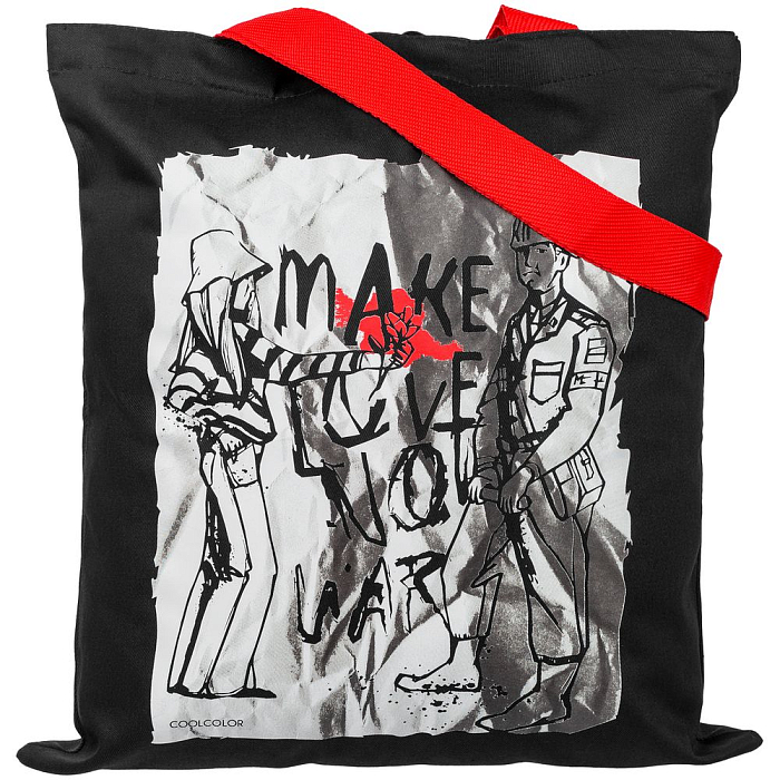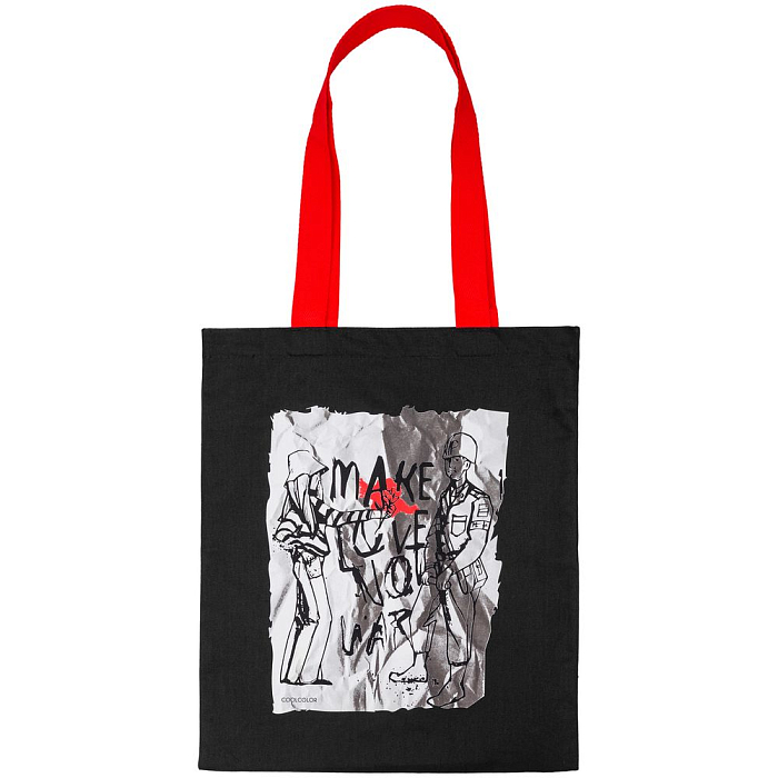 Холщовая сумка Make Love, черная с красными ручками
