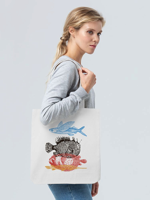Холщовая сумка «Морские обитатели», молочно-белая