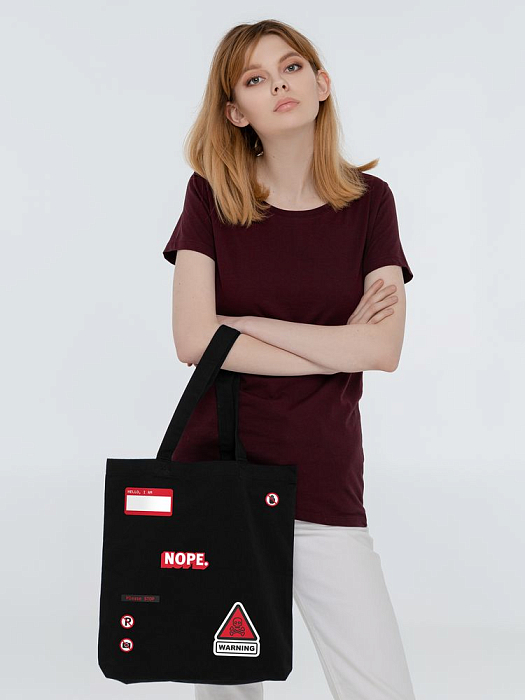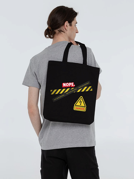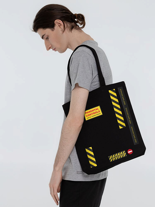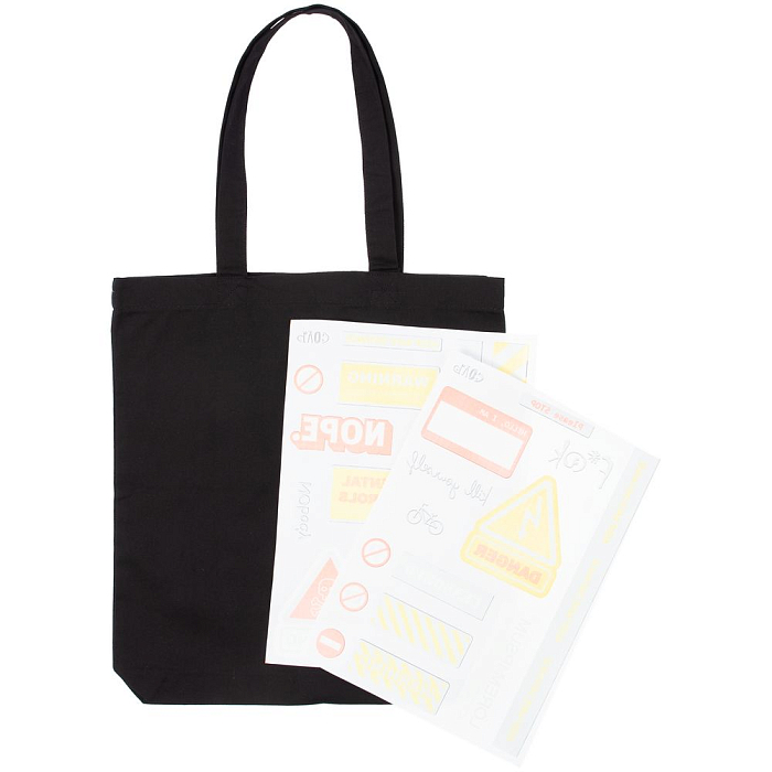 Холщовая сумка с термонаклейками Cautions, черная
