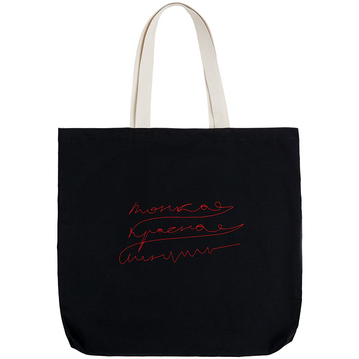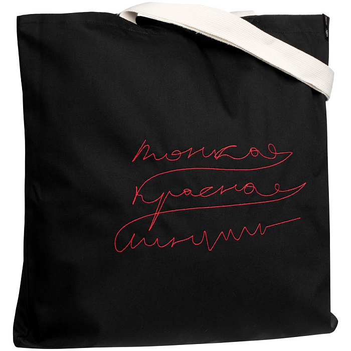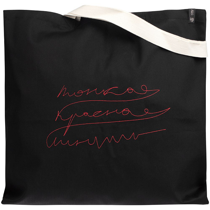 Черный хлопковый шоппер с вкраплением красной нити как олицетворение фокуса на главной цели. Сколько бы ни было вокруг препятствий и соблазнов, с этой сумкой есть все шансы победоносно пересечь тонкую красную линию финиша!Выдерживает нагрузку до 15 кг.