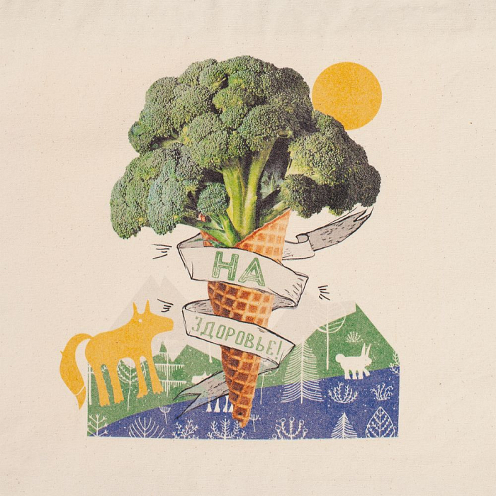 Именно такими светлыми пожеланиями полон авторский принт «На здоровье!».Вместительная сумка на молнии.