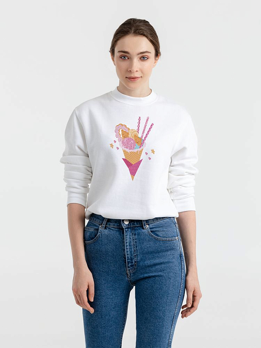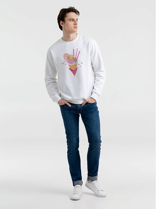 Толстовка унисекс с втачными рукавом. Изнанка: мольтон с начесом. Укрепляющая тесьма по вороту, манжеты, ворот и низ толстовки связаны резинкой с эластаном.