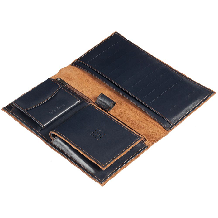 Изделия линейки Palermo изготовлены из гладкой кожи глубокого синего цвета с контрастной отделкой из замши. Оформленные в едином стиле, они легко собираются в подарочные наборы.
