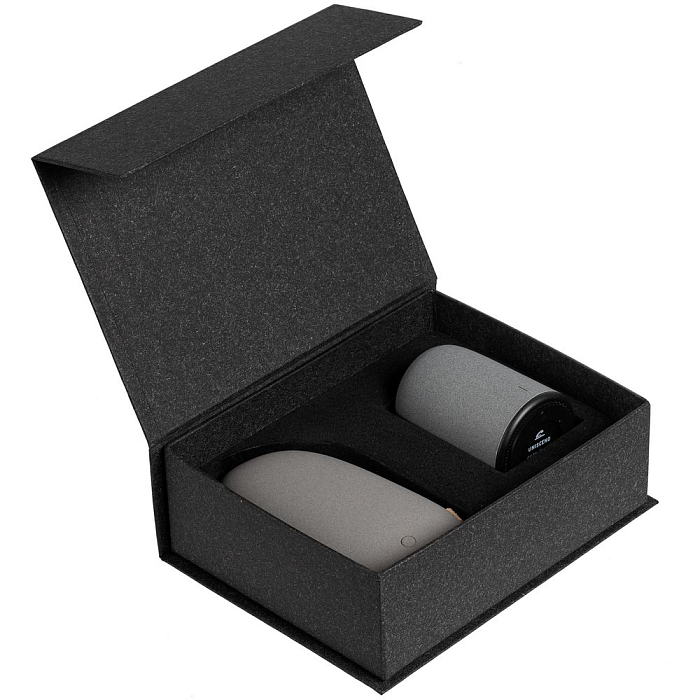 В набор входят аккумулятор Pebble и беспроводная колонка Grinder — незаменимые вещи для отдыха на свежем воздухе. Удобство управления и высокое качество сочетаются в наборе Palm Beach с лаконичным дизайном и шероховатой текстурой поверхности. Набор поставляется в черной коробке, идеально подходящей для нанесения логотипа.