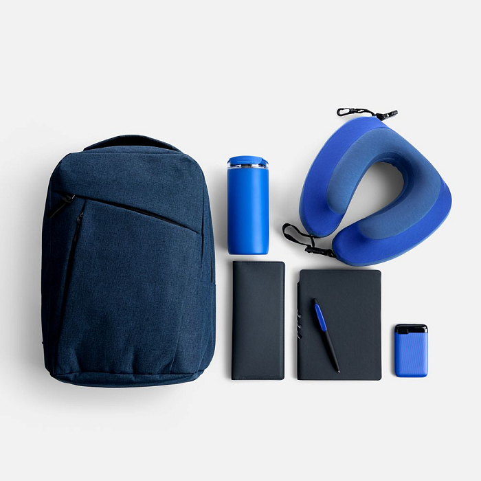 Вместительный рюкзак позволяет с легкостью захватить с собой все необходимое в дорогу. Комфортная подушка гарантирует максимальный комфорт и поддержку шеи во время долгой поездки или перелета, а с дорожным органайзером все важные документы будут в исключительном порядке. Термостакан позволит утолить жажду или согреться, а аккумулятор обеспечит бесперебойную работу всех устройств. Войти в рабочее русло и спланировать все дела даже на ходу позволят ежедневник и ручка, которые всегда будут под рукой.