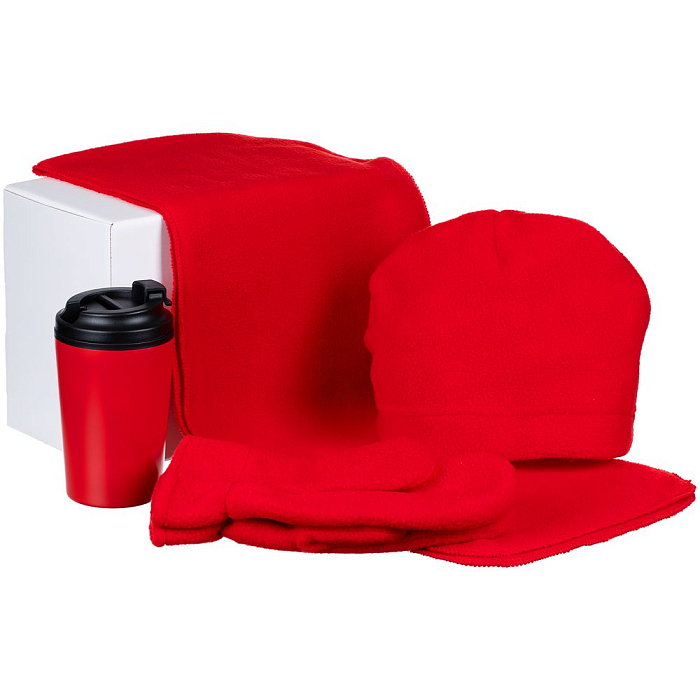 Набор Fleecy с термостаканом, красный