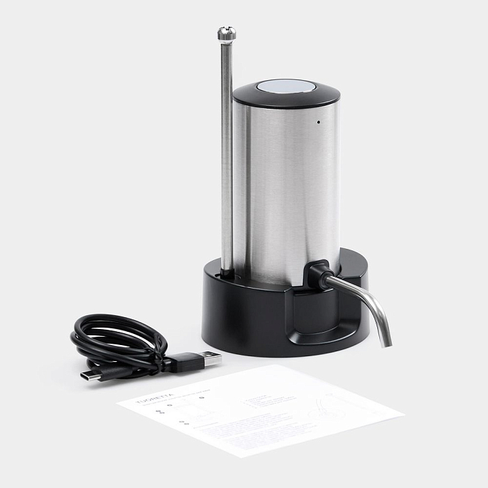 • В комплекте: аэратор-дозатор, съемная подставка, кабель для зарядки, инструкция, фирменная коробка.