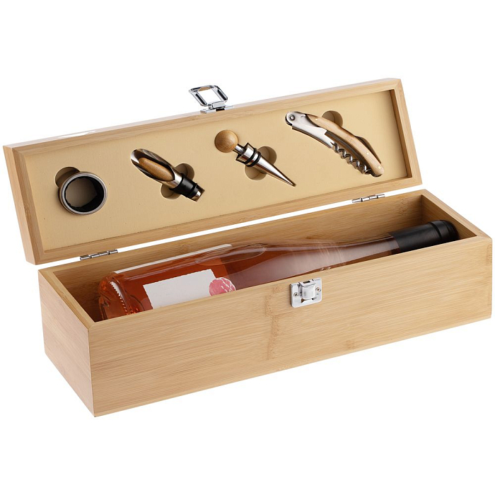 Набор для вина Vinotech с футляром для бутылки — оригинальный и функциональный подарок. Штопор поможет бережно и без усилий откупорить бутылку, а чтобы вино не расплескалось и не оставило пятен, пригодится кольцо-каплеуловитель, надетое на горлышко открытой бутылки: так капли не будут стекать на стол или скатерть. Аэратор поможет аромату вина раскрыться, а винная пробка сохранит свежесть и вкус напитка еще некоторое время после откупоривания бутылки.В наборе: