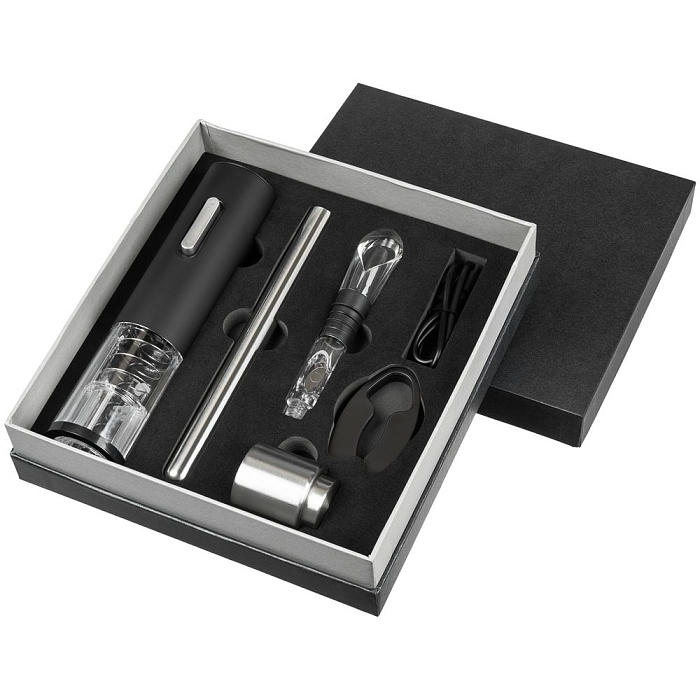 Набор Wine Diesel — настоящая находка для ценителей вина. Благодаря продуманному дизайну автоматический штопор работает практически без участия человека. Изящный чиллер поддержит температуру напитка до часа, удобная разливочная воронка дополнительно аэрирует вино и не позволяет пролить его мимо бокала, а небольшая вакуумная пробка позволит сохранить вкусовые свойства напитка в течение нескольких дней.