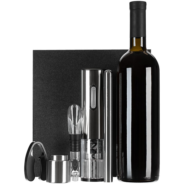 Набор Wine Diesel — настоящая находка для ценителей вин. Благодаря продуманному дизайну использование автоматического штопора практически не требует участия человека. Изящный чиллер поддерживает температуру напитка до часа, удобная разливочная воронка дополнительно аэрирует вино и не позволяет пролить его мимо бокала, а небольшая вакуумная пробка сохраняет вкусовые свойства напитка в течение нескольких дней.