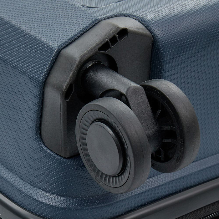 • Блок крепления колеса встроен в корпус чемодана, что обеспечивает лучшую устойчивость к внешнему воздействию