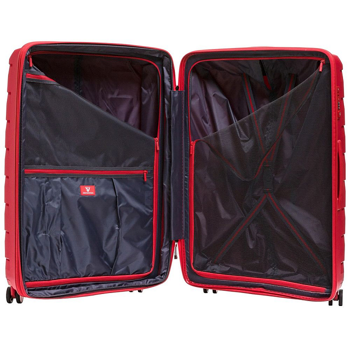 • Чемодан с 2 отделениями: одно из них с фиксирующими ремнями и сетчатой шторкой на молнии, второе — с разделителем на молнии