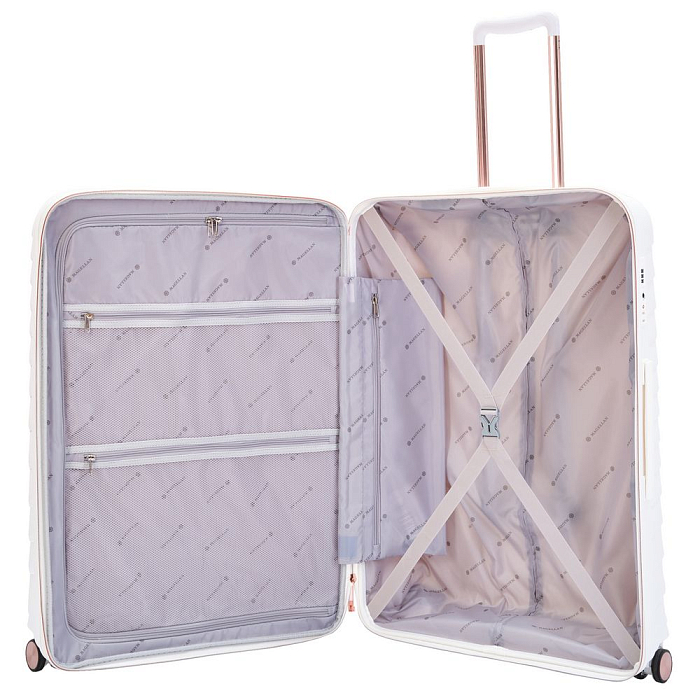 Чемодан из женственной коллекции Victoria имеет стильную обтекаемую форму и узор с плавными волнами, которые выделяют его среди других. Нежные оттенки придают чемодану элегантный вид, подчеркивая индивидуальность и хороший вкус путешественницы.