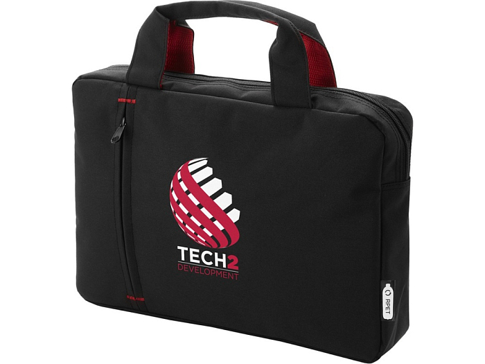 Сумка для конференций из переработанного РЕТ-пластика с основным отделением с застежкой-молнией и передним карманом на молнии, усиленными верхними ручками и модными элементами контрастного цвета.