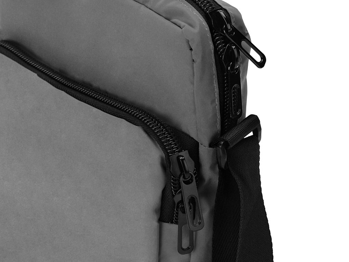 Светоотражающая сумка через плечо обеспечит дополнительную безопасность в темное время суток. Наружный карман на молнии для хранения мелочей. Ремень на плечо 140 см регулируется по длине.