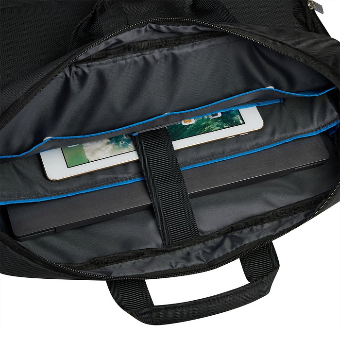 • Основное отделение для файлов А4 с отсеком для ноутбука 17'' и открытыми карманами