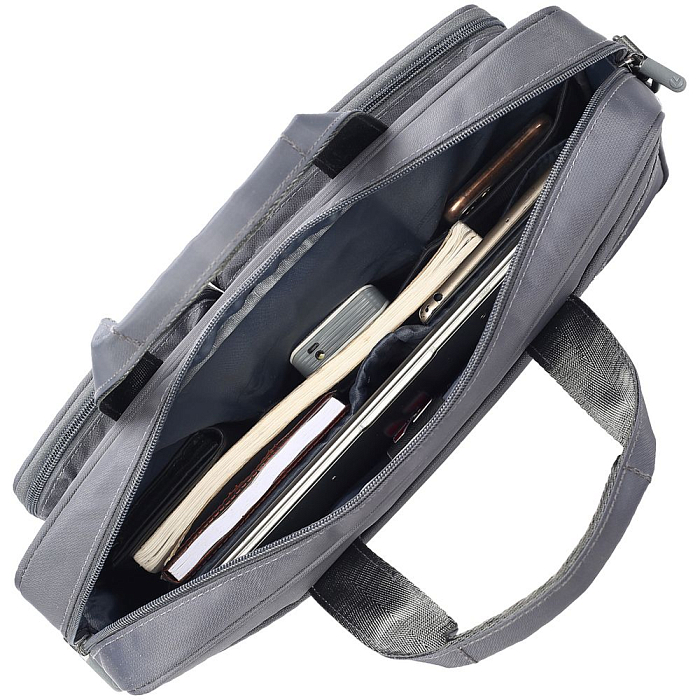 - Основное объемное отделение с двойными застежками-молниями для удобного доступа к устройству и документам